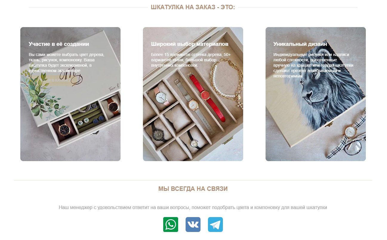 Обратилась ко мне девушка по имени Мария, у неё собственное производство деревянных шкатулок премиум качества. Ранее они черпали заявки из запрещенной соц сети, но после санкций началась большая проблема с количеством заказов. Было принято решение запускать рекламные кампании в Яндекс.Директ . Обсудили план действий и бюджет - и приступили к работе 🔥 .