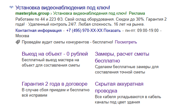 пример рекламного объявления на поиске Яндекс
